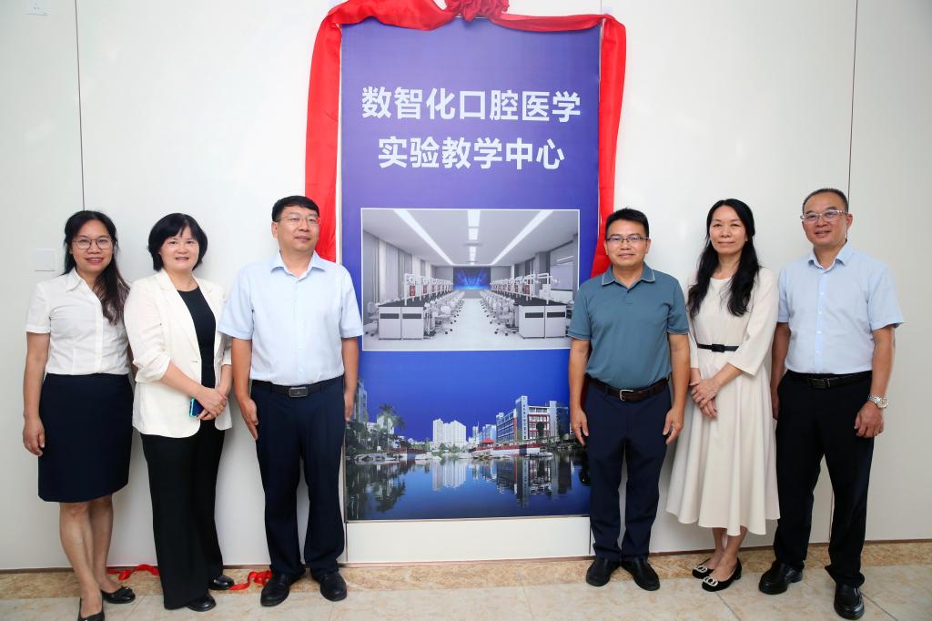 与会领导为数智化口腔医学实验教学中心揭牌。